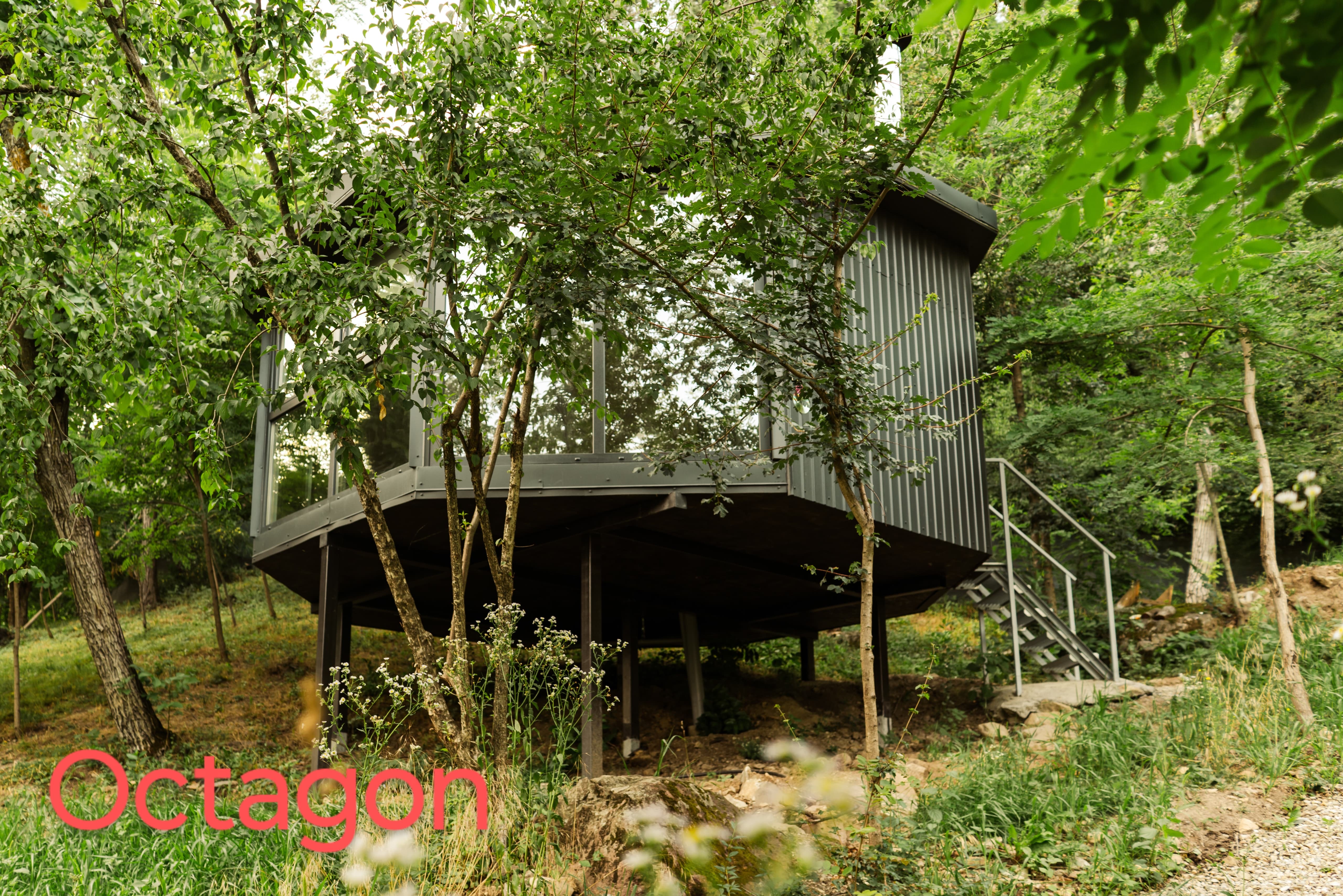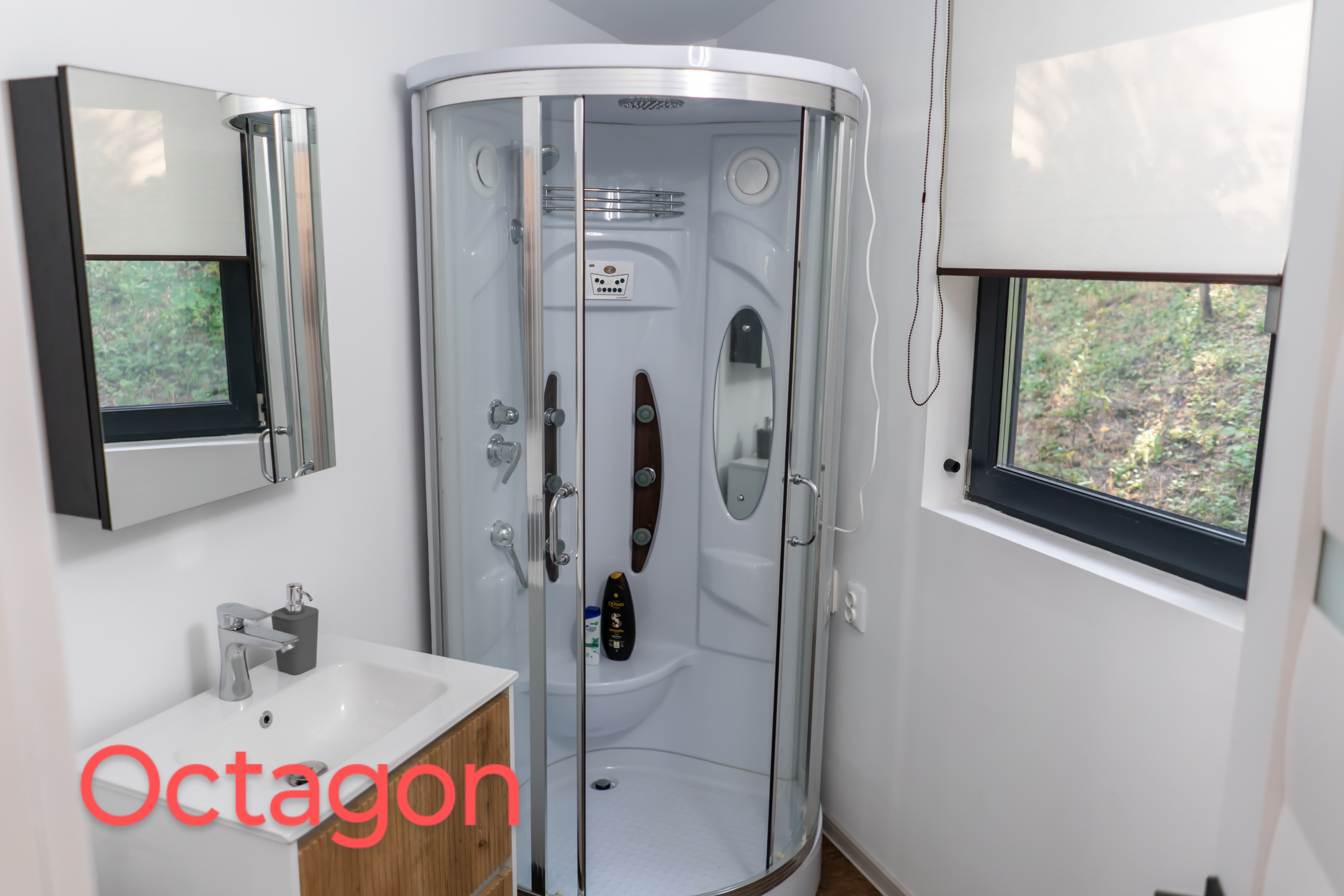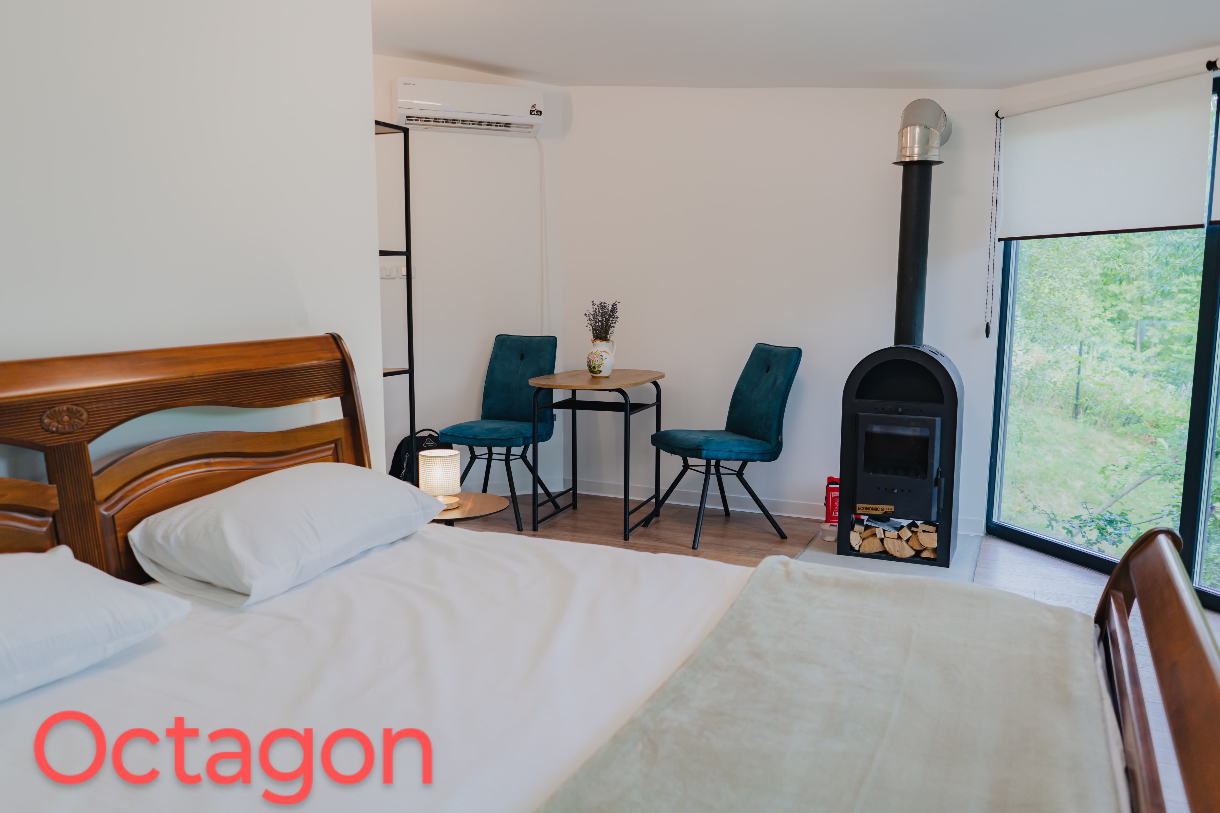 Octagon este o clădire cu un design original. De aici ai o priveliște largă asupra munților dar și a lacului. Octagonul are 29 metri pătrați, pat matrimonial, baie, șemineu și o masă pentru 2 persoane.